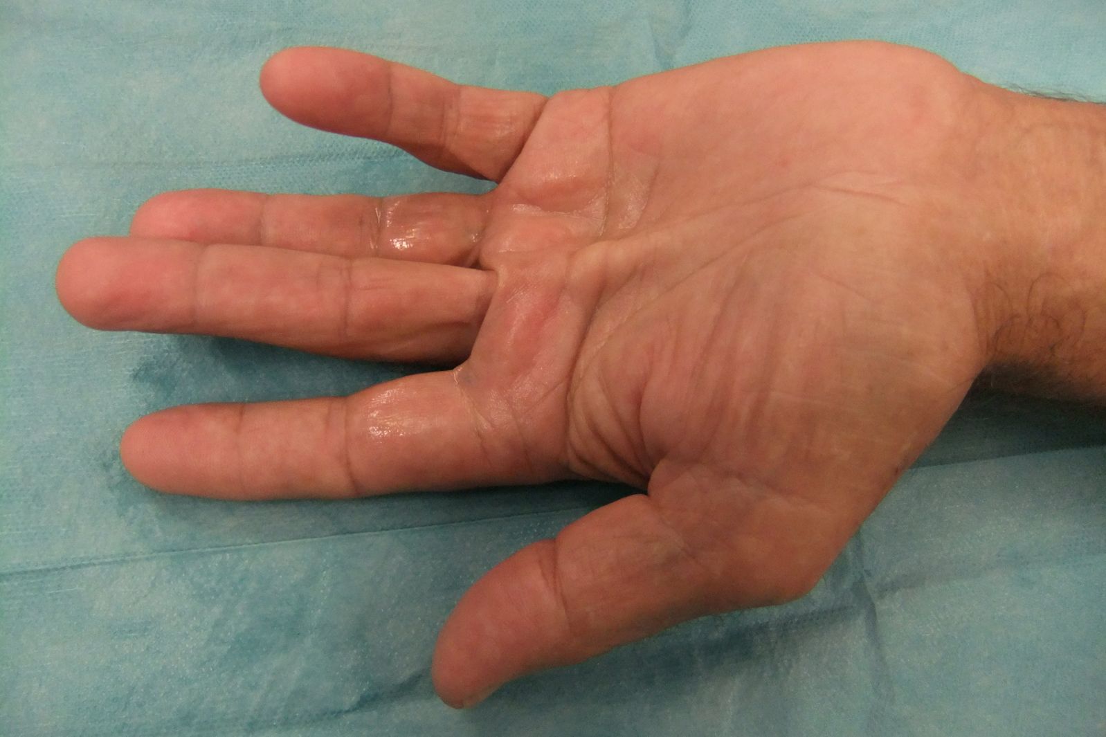Bei der Dupuytren'schen Krankheit können die Finger nicht mehr frei gestreckt werden und krümmen sich in Richtung der Handinnenfläche