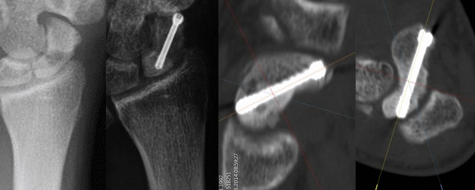 Behandlung eines fehlverheilten Kahnbeinbruches durch Knochentransplantation und Spezialschraube