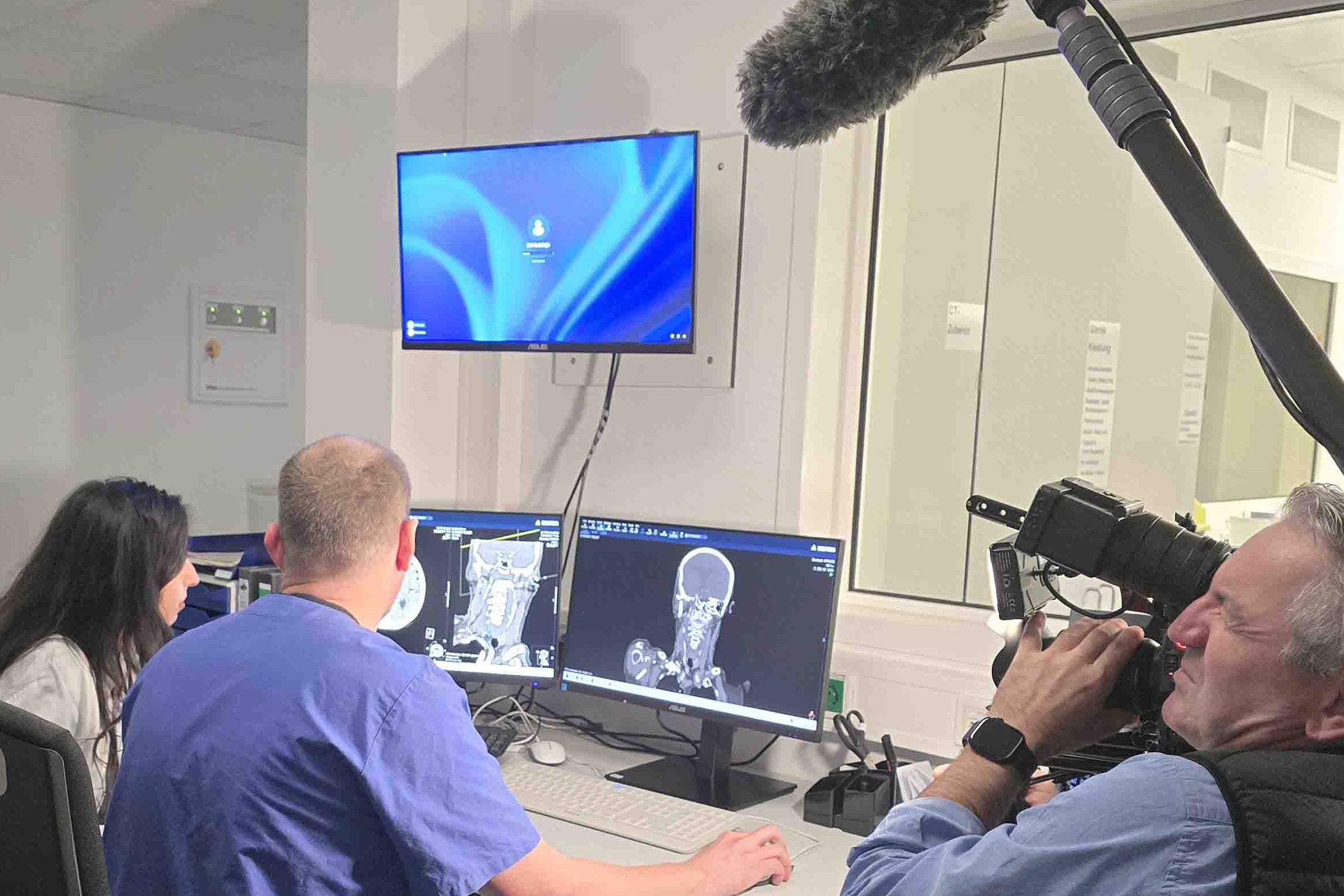 Das Redaktionsteam des ZDF war in der vergangenen Woche bei uns auf dem Winterberg zu Gast und hat in verschiedenen Bereichen im Haus gedreht. Anlass des Drehs war der Tag der Deutschen Einheit und die Frage, wie es mit der grenzüberschreitenden Gesundheitsversorgung läuft. Wer dies auch wissen möchte: Hier kommt ein Einschalttipp für alle, die sich dafür interessieren, wie es um die grenzübergreifende Gesundheitsversorgung zwischen Deutschland und Frankreich steht: Heute Abend berichtet das ZDF in den 19-Uhr-Nachrichten darüber, eingebettet in die Berichterstattung zum Tag der Deutschen Einheit, der an diesem Wochenende im Saarland gefeiert wird.