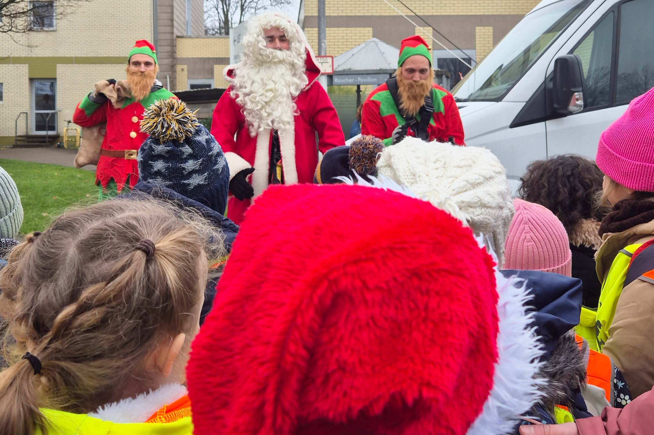 Wir danken allen Beteiligten, die sich mit großem Engagement für diese Aktion eingesetzt haben und diese Idee dank Teamwork zu einem gelungenen Moment in der Vorweihnachtszeit gemacht haben. Ein besonderes Lob geht raus an alle Kinder, die spontan einige Weihnachtslieder - sogar zweisprachig - vorgetragen haben – darüber haben sich der Weihnachtsmann und seine Wichtel besonders gefreut.