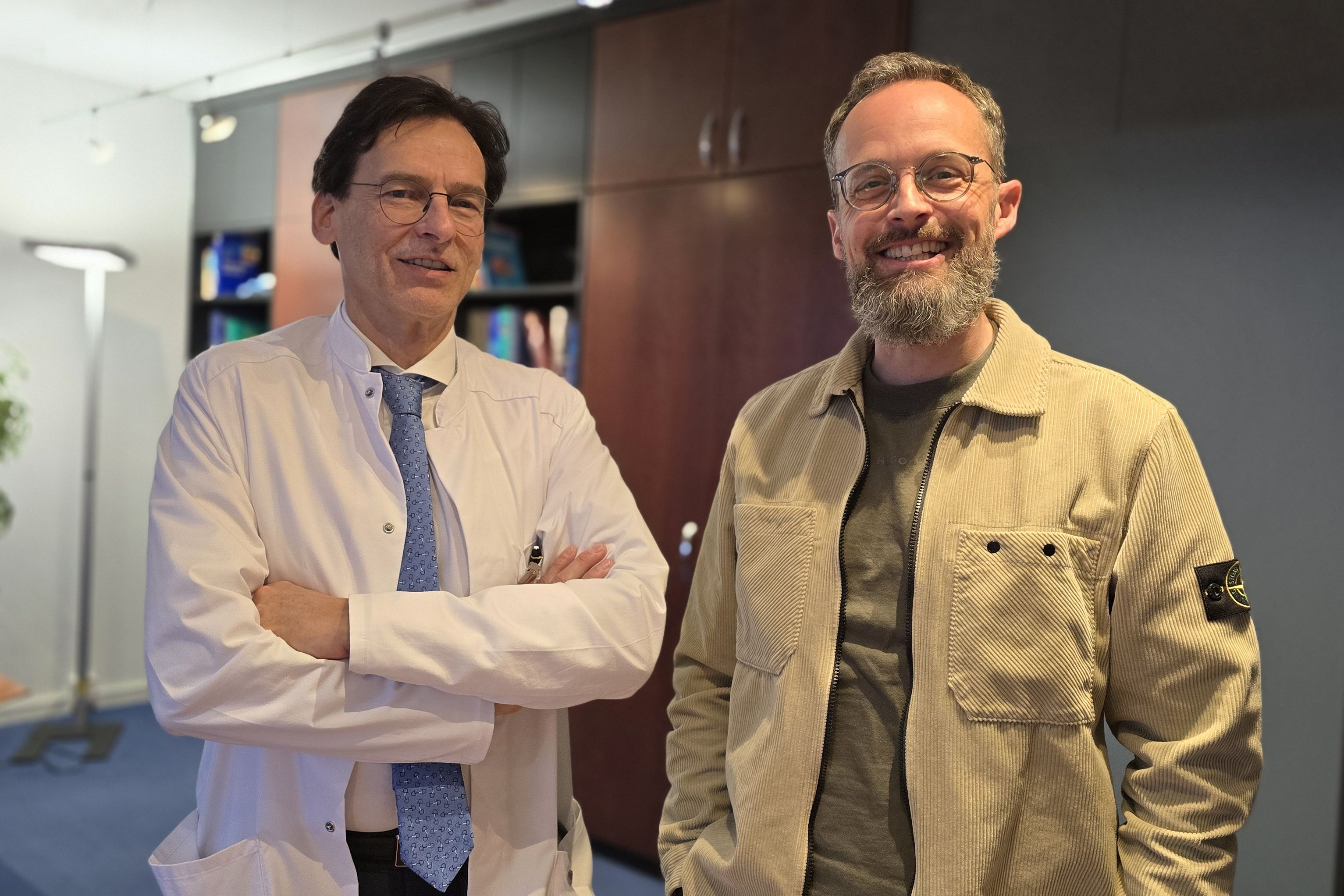 In der Klinik für Innere Medizin I auf dem Winterberg übernimmt ab 1. November 2025 Dr. Klaus Radecke (55) die Leitung und löst den langjährigen Chefarzt Prof. Dr. Daniel Grandt (66) ab. Dieser hat die Klinik im zurückliegenden Vierteljahrhundert maßgeblich aufgebaut und entscheidend geprägt, beispielsweise durch die Einführung moderner Therapieverfahren für Patienten mit schweren Lebererkrankungen. Der neue Chefarzt Dr. Radecke möchte die Klinik im Sinne des Vorgängers weiterführen – und weiterentwickeln. Ein zentraler Punkt hierbei ist sowohl die interventionelle Endoskopie und die interdisziplinäre sektorenübergreifende Zentrumsarbeit. Beiden Chefärzten liegt es am Herzen, Wissen weiterzugeben und damit die Qualität hoch zu halten.